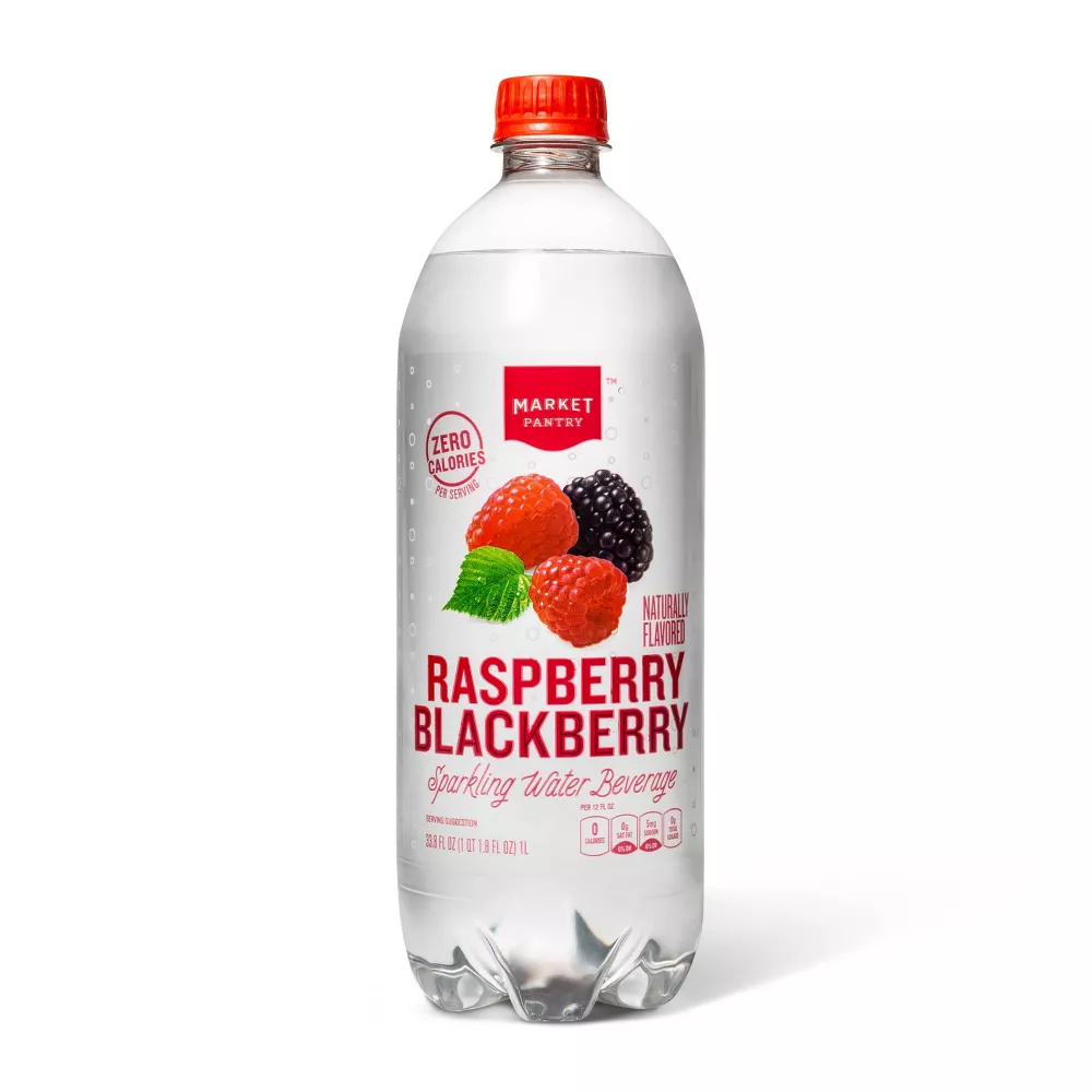 Treat your taste buds to the bubbly and crisp flavor of this Raspberry Blackberry Naturally Flavored Sparkling Water Beverage from Market Pantry™. Made with natural flavors, this flavored sparkling water has zero calories per 12 oz serving, making it a great alternative to juice or soda, while ensuring you stay hydrated by adding to your daily water intake. This bubbly sparkling water combines the great taste of raspberries and blackberries to give a fruity flavored twist to your water — making it great for enjoying at home, at the gym, in the office or while on the go.