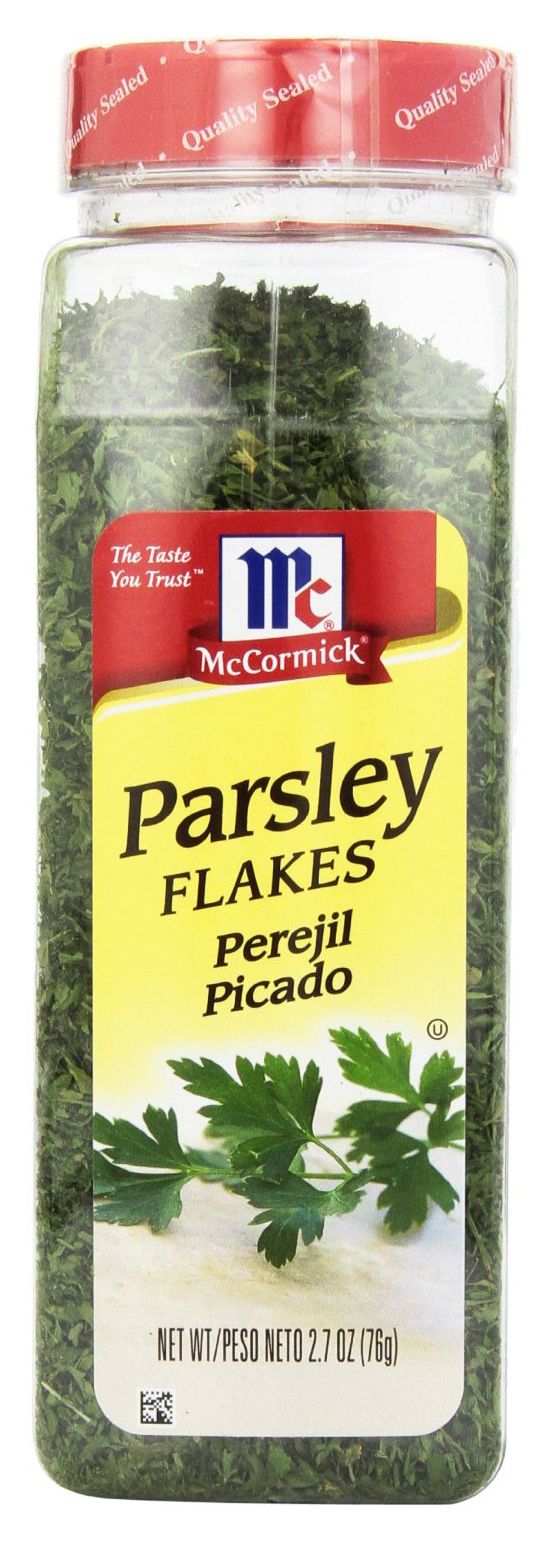 The rich forest green color of McCormick parsley flakes, along with its sweet flavor, makes it the ideal herb for both flavor and garnish. It’s very lightweight; one ounce will give you almost two cups of parsley. Product Features: Parsley flakes are an ideal herb for both flavor and garnishLightweight; one ounce will give you almost two cups of parsleyParsley flakes make a colorful garnishIncludes 2.7 oz. of McCormick parsley flakes (Model 900412092)