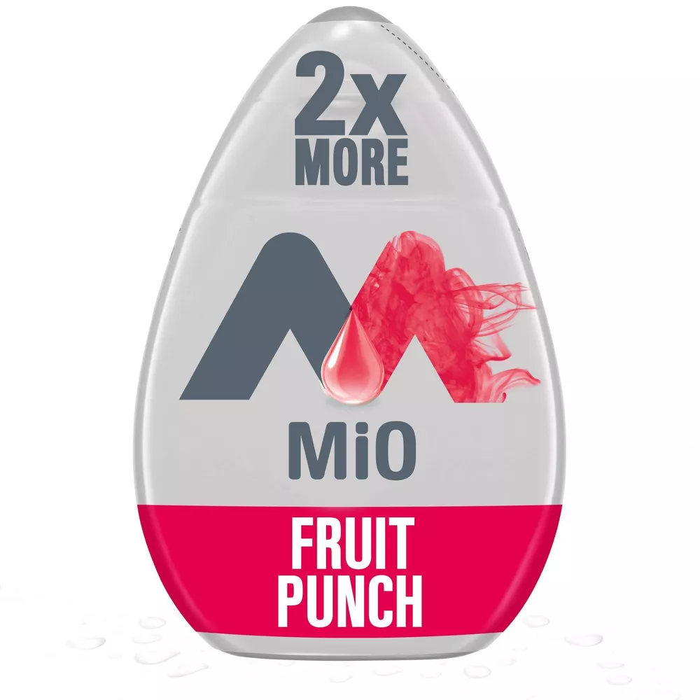 MiO Naturally Flavored with other natural flavors Fruit Punch Liquid Water Enhancer Big Bottle fixes plain water and turns it into a refreshing, flavorful drink to invigorate your day. A single squeeze of our fruit punch flavored water drops delivers bold mixed fruit flavor to bottled water. MiO sugar free liquid water enhancer provides a burst of flavor with zero calories. The portable 3.24 fluid ounce bottle of our sugar free drink mix water flavoring neatly fits in your purse, bag or glove box for easy on-the-go mixing. With just one squeeze, MiO flavored water provides enough bold flavor for 12 fluid ounces! Whether you’re studying, working or heading to workout, add MiO fruit punch mix to your water for delicious mixed fruit flavored water that keeps you sipping.