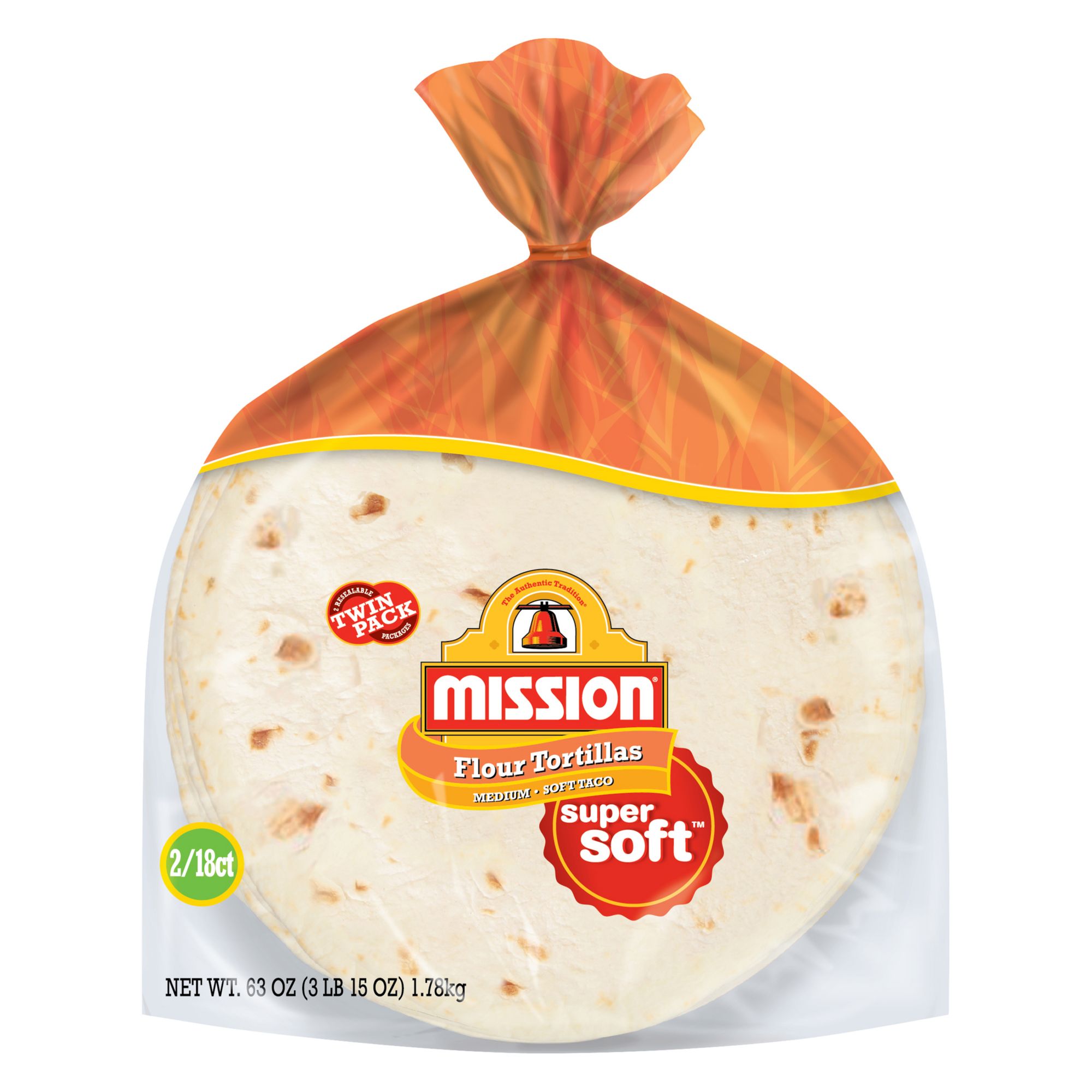 Fill one of the 36 tortillas with your favorite ingredients for a delicious meal in minutes. These wraps give you all the area you need to come up with your own wrap idea or try one of the many delicious Mission recipes. Product Features: Fill 36 tortillas with your favorite ingredients for a delicious meal in minutes0g trans fat per servingNo lardNo cholesterolIncludes two bags of Mission soft taco medium size flour tortillas, 18 count each (Model 073731002971)