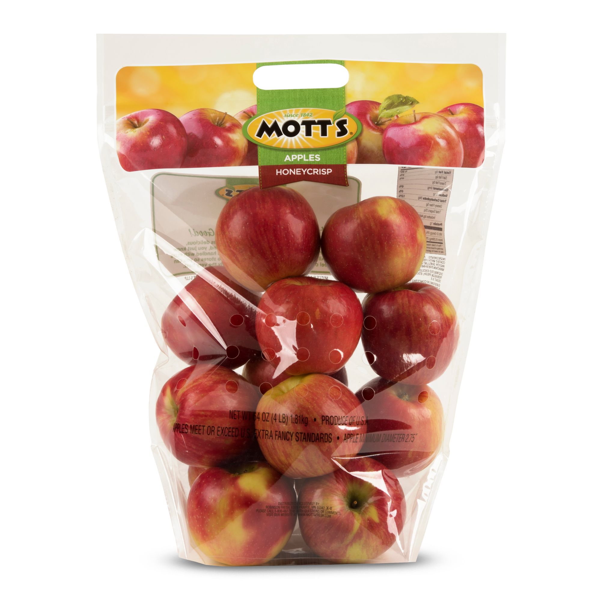 Healthy never tasted so good! The Mott’s name, trusted since 1842, provides delicious, nutritious products. When you see the Mott’s brand, you just know that everything, from orchard to aisle, has been handled with extra care. All apples are hand-picked and delivered to stores so you can feel confident that you are giving your family the very best. Mott’s Fresh apples are delicious, healthy, and convenient to take with you anywhere. With more than 7,000 different apple varieties in the world, it’s no wonder it’s so tough to choose a favorite. Mott’s made it easier by breaking down each of our varieties by taste, texture, and best usage. One of the more popular apple varieties for a reason, the Honeycrisp is sure to please. Mott’s Honeycrisp apples are excellent snacking apples that are firm, crunchy and especially juicy. Sweet-tart family that the whole family will enjoy! Product Features: Sweet, sharp, refreshing honeycrips apples is a modern favoriteHoneycrisp apples have red or red-and-yellow skins with a white to pale yellow flesh that is crisp with a sweet-tart flavorJuicy, crisp, with a refreshing sweetness similar to fresh apple ciderMott’s fresh apples are delicious, healthy, and convenient to take with you anywhere.