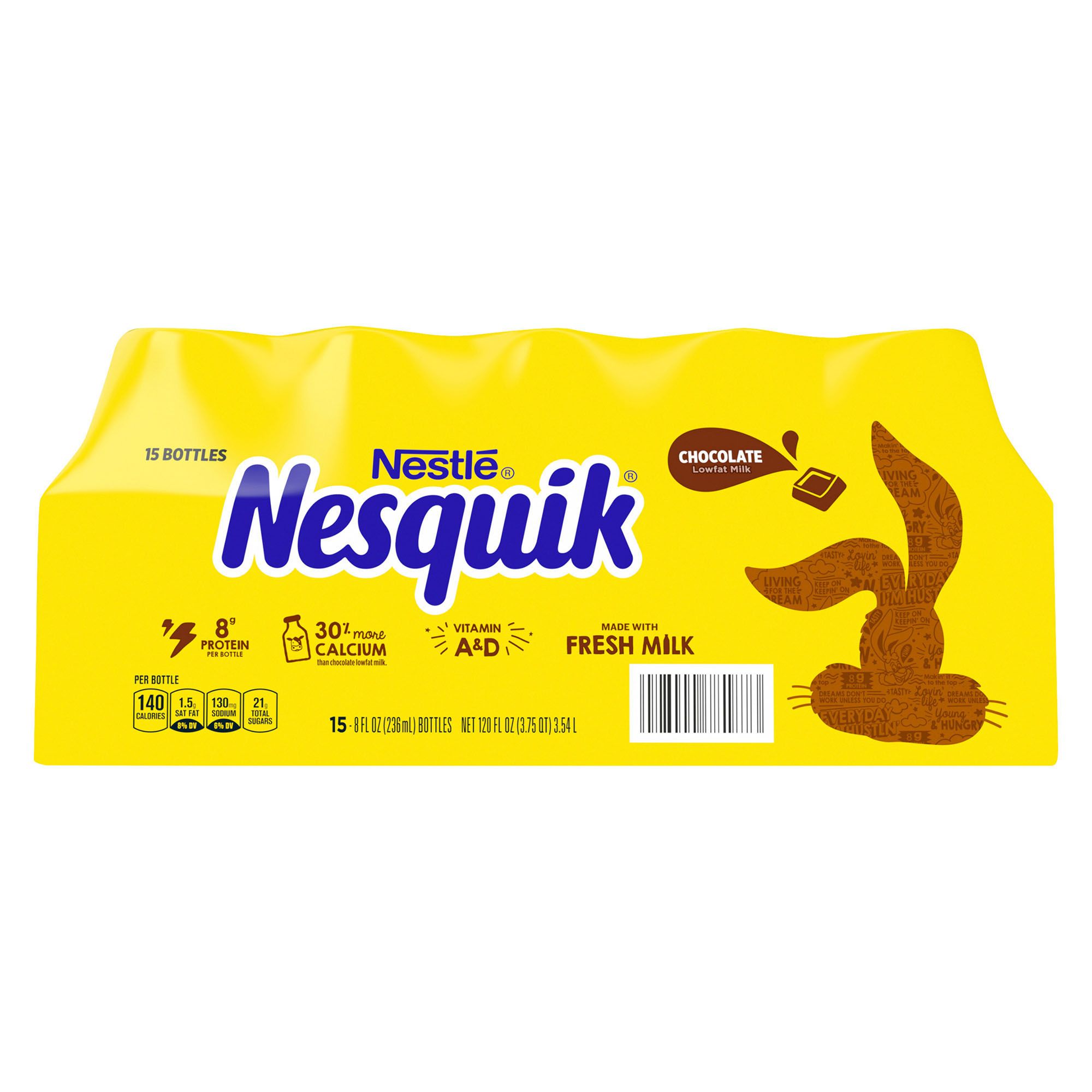 Made in USATake a swig of Nestle Nesquik 8 Oz. Chocolate Low-Fat Milk after an intense workout. Packed with protein, carbs and vitamins, this milk helps athletes recover faster. Plus, the sweet chocolate flavor makes it taste great, too. This pack comes with 15 bottles and they don’t need to be refrigerated thanks to the…