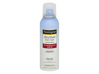 Neutrogena Ultra Sheer Body Mist Sunscreen provides broad-spectrum UV protection in an ultra light sheer mist.Stabilized with Helioplex Technology, it provides superior balanced broad-spectrum protection against UVA-aging and UVB-burning rays in an ultra-light, non-greasy finish. This weightless formula applies easily to even hard-to-reach areas. This one-touch continuous spray works at any angle.