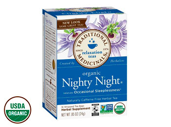 Nighty Night Tea by Traditional Medicinals 16 Bag Traditional Blends Tea’s-Organic Product Passionflower. We love it both for its wildly intense beauty and for its ability to calm and soothe your nervous system and help relieve occasional sleeplessness. When the Spanish missionaries chanced upon it they saw the perfection of the universe reflected in its anatomical structure. The native people of the Americas used this plant for its ability to promote rest and relaxationsomething modern people occasionally need help with too. Weve added other relaxing herbs like chamomile linden flower and hops to create a mellow blend that will help you rest easy. Minty mildly bitter and sweet with notes of citrus and spice. Helps you relax and get a good nights sleep Directions Pour 8 oz. freshly boiled water over 2 tea bags in a cup.