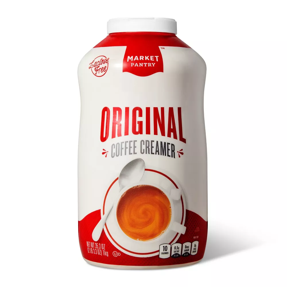 Enjoy your favorite pick-me-up with a touch of extra creaminess by adding Original Non-Dairy Creamer from market pantry™. This lactose-free coffee creamer is great for those with dairy sensitivities, but it’s still full of the original flavor you love. Add a splash or two to your morning or afternoon coffee to bring out its flavor profile and lend a smoother texture, and froth it if you desire richness and body. With a 35.3-ounce size, this dairy-free coffee creamer is perfect for the whole family or to enjoy yourself throughout the week and beyond.