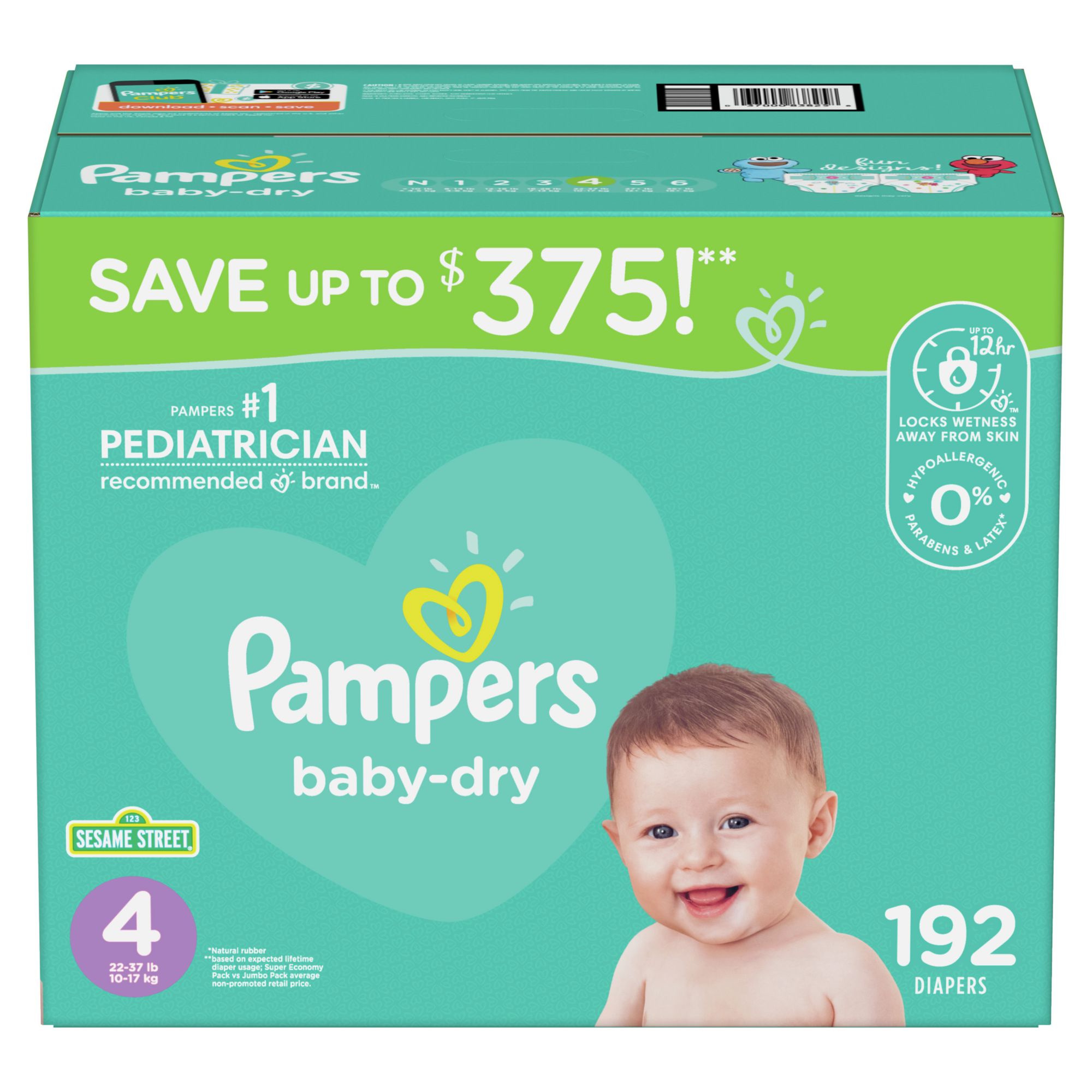 Designed to help keep skin dry and healthy, Pampers Baby-Dry diapers feature LockAway Channels to absorb wetness and lock it away from skin for up to 12 hours of dryness. Plus, new and improved Dual Leak-Guard Barriers (sizes 1-6) help protect where leaks happen most for all-night sleep protection. Pampers Wetness Indicator changes color when baby is wet, so you know when it’s time for a change. Gentle on baby’s skin, Pampers Baby-Dry diapers are hypoallergenic and free of parabens and latex (natural rubber) and are Skin Health Alliance, dermatologist approved. For trusted protection trust Pampers, the #1 pediatrician recommended brand. Product Features: Pampers is the #1 pediatrician recommended brandProtect your baby’s skin with 5 layers of protection and up to 12 hours of drynessNew and improved dual leak-guard barriersLockAway Channels absorb wetness and lock it away from skinSkin Health Alliance, dermatologist approved—hypoallergenic and free of parabens and latexColor-changing Wetness IndicatorFun and colorful Sesame Street designs and characters