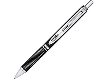 Pentel EnerGel Alloy Retractable Gel Pen, Black Barrel, Medium Point, Black