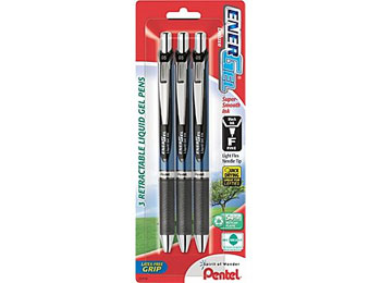 EnerGel RTX is an ultra smooth writing pen that features fast-drying liquid gel ink and is great for left handed users – no smears, no smudges, no globs. Latex-free grip in a 0.5mm needle tip that writes fine lines and is refillable. Black Ink Fine point, 0.5mm Features EnerGel√جø¬Ω Ink Inside – Ultra smooth ink line which is quick -drying and is ideal for left-handers – no smears, no smudges and no globs Black Barrel Sleek & stylish barrel design with stainless steel accents for a professional look Latex-free grip for writing comfort and control 0.5mm needle tip writes fine lines 3 pens per pack