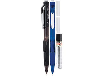 5mm lead Finger-molded latex-free grip provides hours of comfortable use Convenient side button allows lead to advance effortlessly without changing hand position Turn dial left to advance large eraser and right to retract it Refillable lead and eraser Starter set includes 2 pencils, 2 erasers and 1 refill lead Pencils are made from 59% recycled…