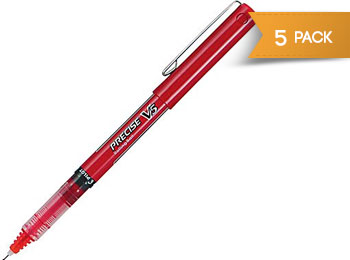 Pilot Precise V5 Needle Rollerball Pens, Extra Fine Point, Red – 5 Pack