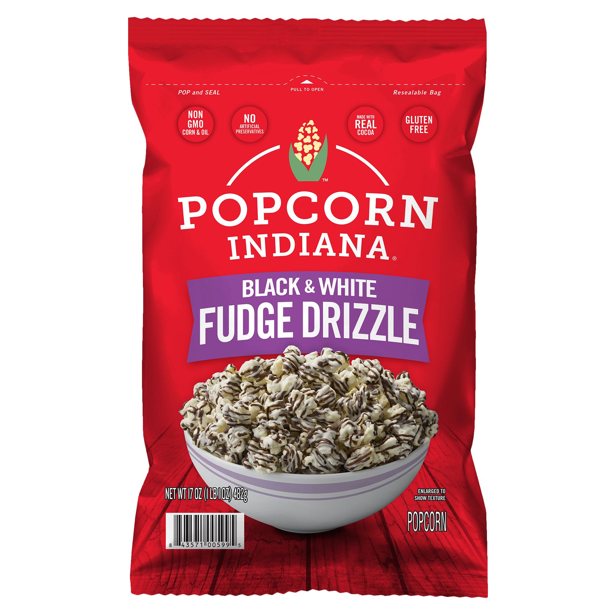 Popcorn Indiana drizzlecorn, black & white are tender pieces of joy made for you and your family. This limited-edition snack is perfect to satisfy even the strongest sweet tooth. Not only is this popcorn delicious, it is also loaded with benefits; it is kosher and gluten free. Go ahead and snack because these morsels are made with no artificial colors, flavors or preservatives and no cholesterol, no trans fat and no high fructose corn syrup. Product Features: Gluten freeNon-GMOMade with real sugar Made in USAA better for you snack