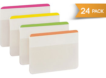 Post-it 2 Durable Filing Tabs, Assorted Bright Colors – 24 Pack