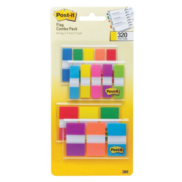 Post it Flags make it simple to mark, flag, or highlight important information. They stick securely, remove cleanly, and come in a wide variety of colors. Draw attention to critical items or use them to index, file or color code your work at home, work or in the classroom. Product Features: Mark and highlight important informationSticks securely, removes cleanlyIdeal for marking documents without writing on themUse to draw attention to critical items, organize files, or color-codingDispenser keeps flags organized and easy to findAssorted colorsIncludes (120) .94″W and (200) .47″ Post-It Flags (Model 683-XL1)