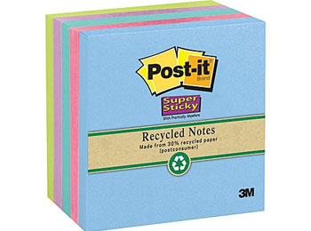 Unique adhesive allows notes to stick securely to almost any surfacerr3′ x 3′, 90 sheets per padrTropical colorsrNotes stick securely to more surfaces than most other notesrStick notes where they’ll really get noticed, like monitors, doors and wallsrRecycled notes contain 30% post consumer materialr5 pads per pack