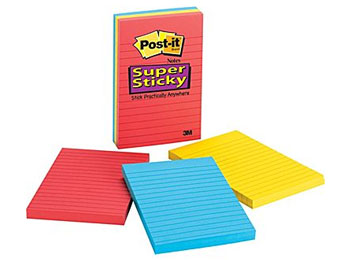 4′ x 6′, 90 sheets per padrSamba colorsrNotes stick securely to more surfaces than most other notesrStick notes where they’ll really get noticed, like monitors, doors and wallsrLine-ruled for list taking and organizing thoughtsr3 pads per pack