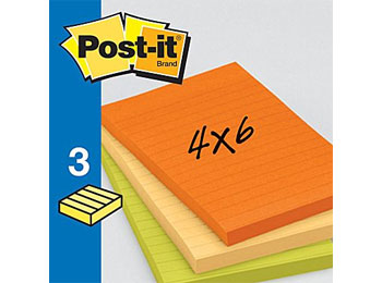 4′ x 6′, 100 sheets per padrFarmers Market colorsrNotes stick securely to more surfaces than most other notesrStick notes where they’ll really get noticed, like monitors, doors and wallsrRecycled notes contain 30% post consumer materialrLine-ruled for list taking and organizing thoughtsr3 pads per pack
