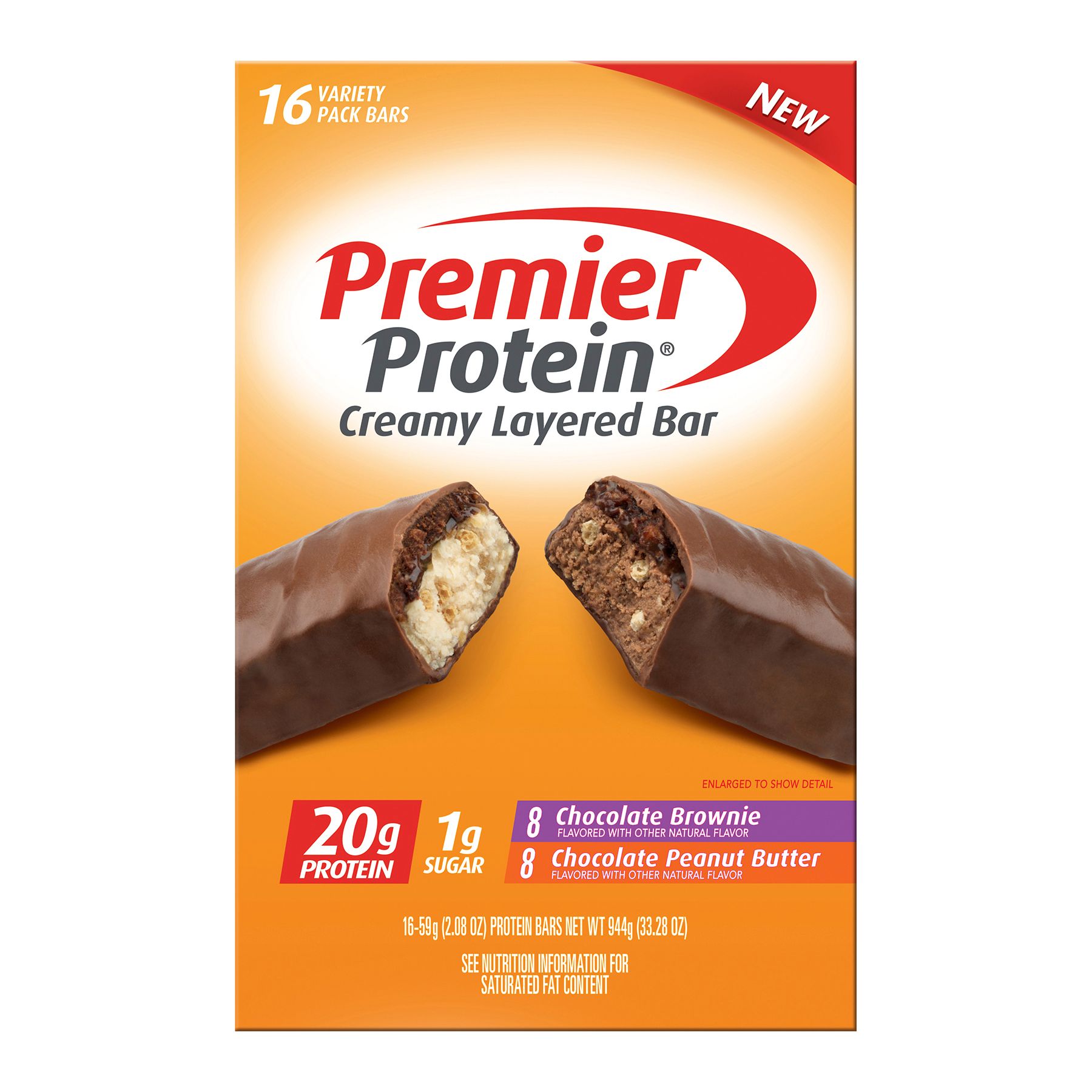 Made in USAConvenient nutrition that tastes delicious! Experience mouthwatering layers of scrumptious chocolate peanut butter flavor with pops of smooth nut butters in every bite of the Chocolate Peanut Butter protein bar! and mouthwatering layers of scrumptious chocolate flavor with pops of smooth brownie in every bite of the Chocolate Brownie Bar! Each bar contains 20g protein, 1g sugar, and is gluten free. Premier Protein Bars are great on the go, as an afternoon snack, or post-workout, our bars have the same amazing taste as our delicious, fan-favorite Shakes! Product Features: Delicious, convenient on-the-go nutritionEach bars contains 20grams of protein, and only 1 gram sugarGluten FreeComes in two delicious indulgent flavors – Chocolate Peanut Butter, and Chocolate BrowniePremier Protein Bars contain a combination of whey protein and soy protein, to sustain energy for a longer period of timePremier Protein bars contain all nine essential amino acidsThey are essential because the human body cannot produce them itself and must receive them from foodThe 20g of protein per bar keeps you feeling full & satisfied when the hunger cravings kick-in during mid-morning or mid-afternoonPremier Protein bars are a convenient snack for active individuals who are busy and always on the goContains coconut, milk, peanuts, and soy