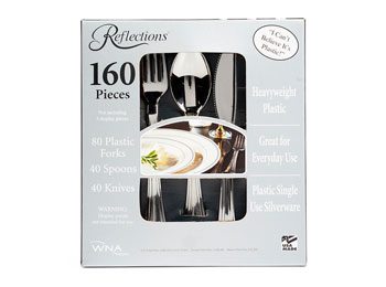 Enjoy effortless party planning with the convenience of Reflections disposable flatware. Heavyweight plastic flatware great for everyday use. 160-pc set includes 40 Forks, Spoons and Knives + BONUS 40 Forks