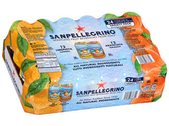 Sanpellegrino Sparkling Fruit Beverage Variety Pack includes: 12 – Sparkling Lemon/Limonata Beverage 150 calories per can With 18% lemon juice from concentrate and other natural flavors 12 – Sparkling Orange/Aranciata Beverage 140 calories per can With 16% orange juice from concentrate with other natural flavors Specifications Sparkling and refreshing All natural ingredients Product of Italy No artificial coloring Kosher