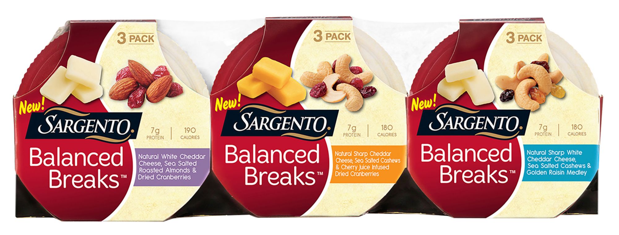 Made in USAWith mouthwatering cheese, nuts and dried fruits in each and every serving, the Sargento Balanced Breaks Snack Trays offer a versatile treat that’s effortlessly enjoyed alone or alongside a tasty lunch. Each tray delivers 7g of protein and contains less than 200 calories. Product Features: Each tray contains cheese, nuts and sweet dried fruits for a wholesome, tasty snackEvery serving offers 7g of protein and contains less than 200 caloriesComes with 3 types of trays: White cheddar, almonds and cranberries; sharp cheddar, cashews and cranberries; white cheddar, cashews and raisinsIncludes 9 snack trays; 3 of each type Product Warnings and Restrictions: Contains nuts. (Model 0-46100-30269-9)