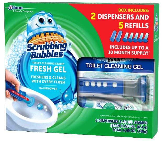 With Scrubbing Bubbles Fresh Citrus Toilet Cleaning Stamps and Gel, cleaning becomes simple and more manageable with this unique toilet bowl cleaner. It gradually dissolves with each flush, allowing a controlled release of cleaning solution and fragrance, and it leaves no residue behind. Your toilet bowl will remain clean, longer with practically zero effort on your part. Product Features: Disposable, easy-to-use dispensersGradually dissolves with each flush, allowing a controlled release of cleaning solution and fragranceToilet bowl remains cleaner, longerSafe for septic systemsIncludes 2 dispensers and 30 gel stamps (Model 304904)