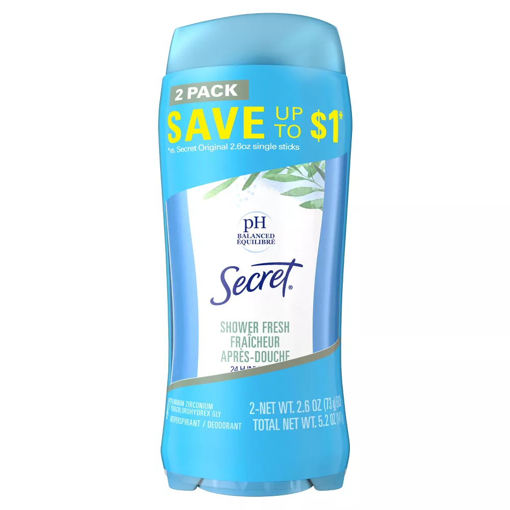 Secret pH Balanced Shower Fresh Invisible Solid Antiperspirant & Deodorant Twin Pack – 2.6oz/2ct