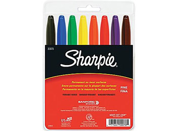 Assorted colors: black, blue, red, green, orange, yellow, purple, brown Durable tips won’t soften or spread Quick-drying, waterproof ink Writes permanently on almost any surface such as glass, wood, metal, photos, plastic or cellophane AP certified nontoxi