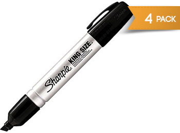 Black Chisel tip draws highly visible lines on corrugate, wood, metal, foil, stone, plastic and leather Durable aluminum body and felt tip are tough enough to withstand heavy use Marks on wet and oily surfaces 4 markers Xylene-free, non-toxic ink