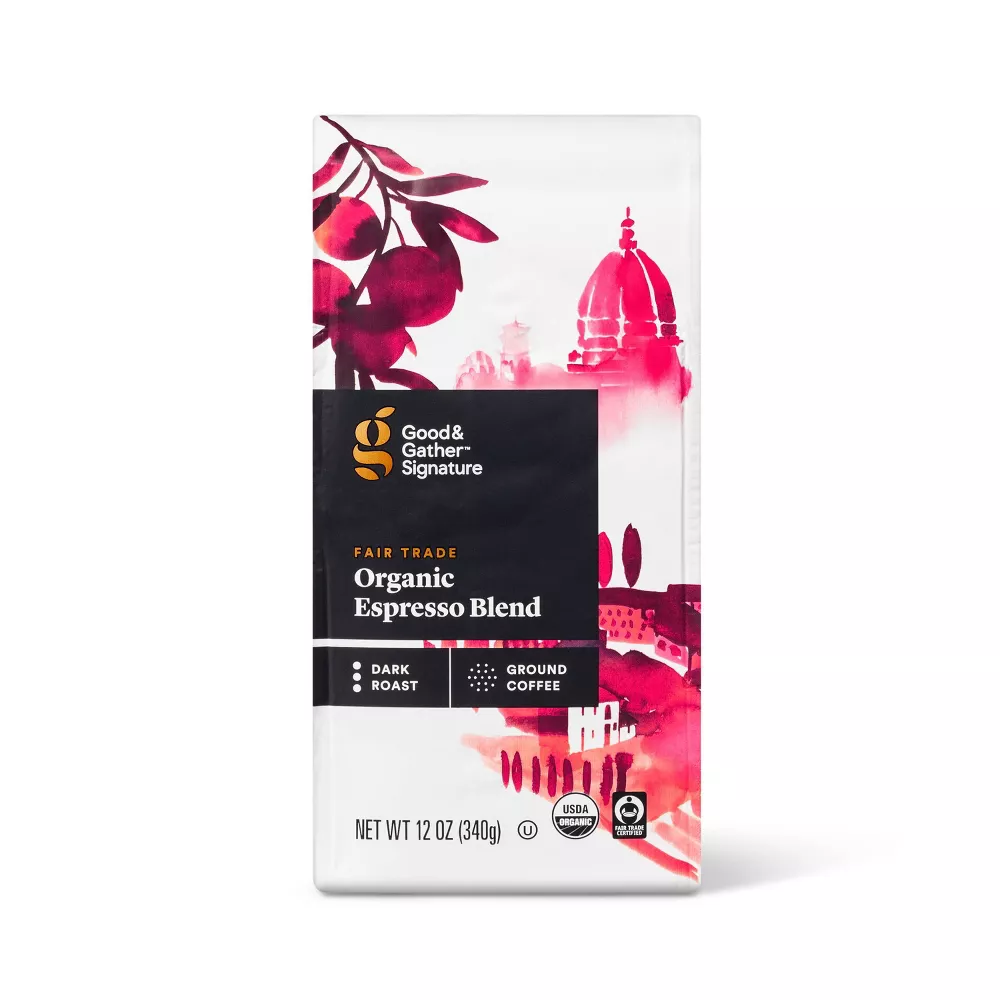 Start the day off on the right foot with a cup of Organic Espresso Blend Ground Coffee from Good & Gather™. Sourced in Latin America, this coffee is dark roasted for a bold, rich flavor with notes of bittersweet chocolate, and the beans are Fair Trade Certified™ and USDA organic for a sipping experience you’re sure to savor. Plus, the coffee comes ground for fast, convenient prep and compatibility with most drip coffee machines. Enjoy it hot to start the morning off right, or pour over ice and flavor with your favorite syrup or creamer for a little bit of afternoon indulgence.