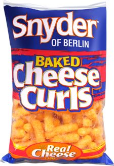 Open a bag of Snyder of Berlin Cheese Curls; they have two types of real cheeses with melt-in-your-mouth, tangy taste of real cheddar and blue cheeses. Always baked and never fried, these cheese curls are hard to put down. Product Features: Cheese curls with two types of real cheese: real cheddar and blue cheesesAlways baked and never friedPuffed to perfectionIncludes 18 oz. of Snyder of Berlin Cheese Curls (Model 023000371284) Product Warnings and Restrictions: Contains milk