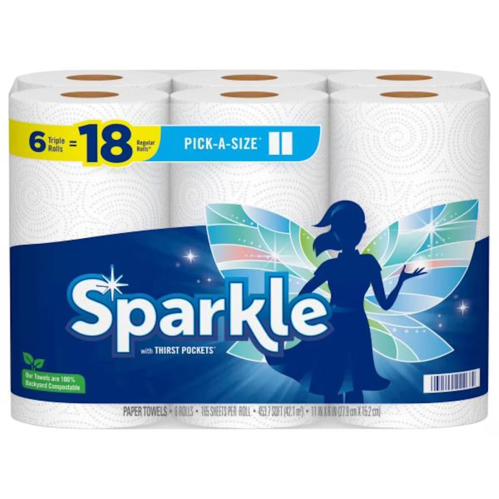 Sparkle Pick-A-Size Paper Towels 6 Triple Rolls = 18 Rolls