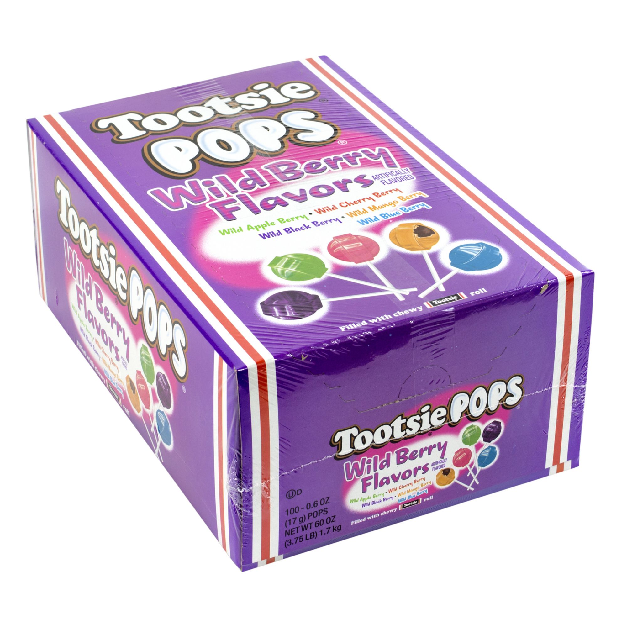 Made in USAHow many licks does it take to get to the center of a Tootsie Roll Pop? With flavors like Wild Apple Berry, Wild Black Berry, Wild Mango Berry, Wild Cherry Berry, and Wild Blue Berry, you’ll want to take you time and savor the hard candy coated exterior. With 100 individually wrapped pops, this bulk candy box is perfect for filling up the pinata or candy buffet at your next party or celebration. Product Features: Wild Apple Berry, Wild Black Berry, Wild Mango Berry, Wild Cherry Berry and Wild Blue Berry flavored lollipopsIndividually wrapped lollipops with a Tootsie Roll centerMade in the USAIncludes 100 lollipops Product Warnings and Restrictions: Contains soy and milk When purchasing food items on BJs.com, please be aware that item information on our site comes from product manufacturers and vendors, and BJ’s does not guarantee that the allergen, ingredient and country of origin information on our web or mobile sites are accurate or complete. We recommend that you review each item’s label and/or contact the manufacturer directly if you have questions or concerns regarding the ingredients of a specific item. (Model 209-01184)