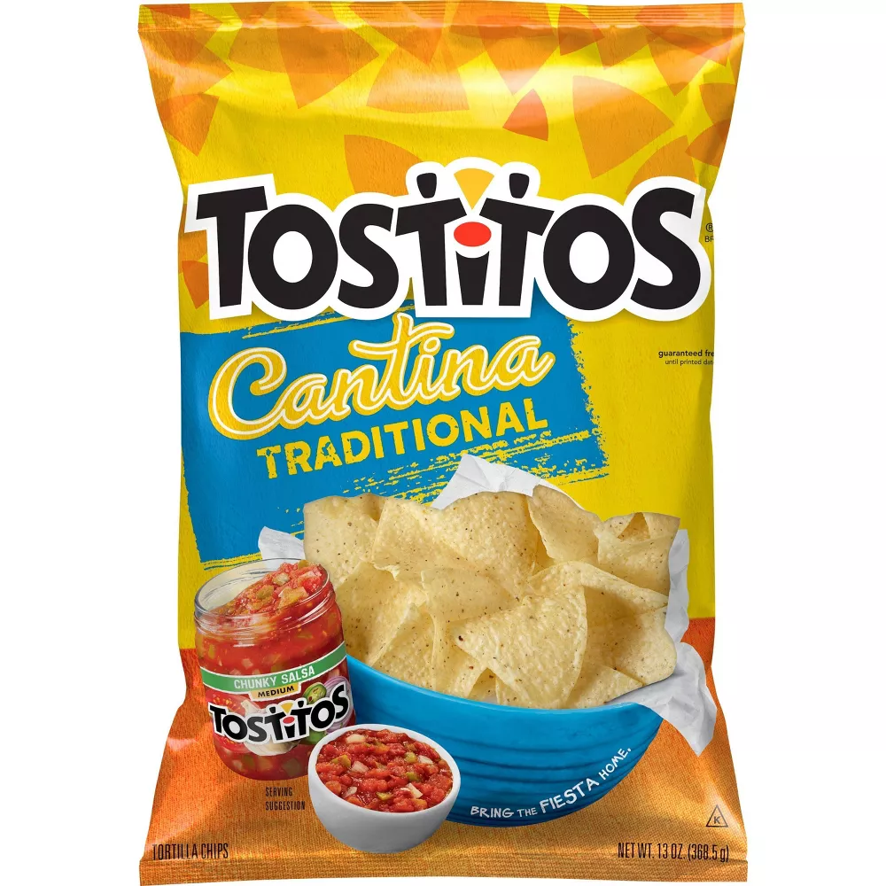 Bring classic tortilla chip flavor to the party with Cantina Traditional Tortilla Chips from Tostitos. These tortilla chips are made to give you a crispy crunch with every bite. These cantina-style chips are great for pairing with your favorite dips and salsas, and are sure to be a hit at your next gathering.