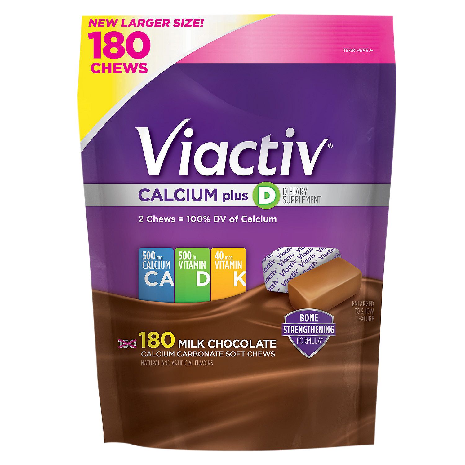 Viactiv calcium soft chews provide targeted nutrition that helps keep you active and strong. 2 Viactiv calcium soft chews provide 100% of the daily value of calcium plus vitamins D3 and K, in a delicious convenient form you can take with you. Product Features: Bone-strengthening formulaSmall in size, big on impactEasy, enjoyable way to get your daily value of calciumCalcium helps maintain healthy bonesVitamin D3 boosts calcium absorptionVitamin K helps in formation of bone proteinsMilk chocolate flavorIncludes 180 chews (Model 00485)