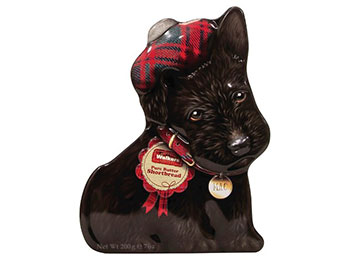 Meet Mac! The wee official Scottie Dog tin features this adorable Scottie Dog complete with tartan beret and collar! Enjoy Walkers Mini Scottie Dog shaped pure butter shortbreads with a cup of tea or coffee. These shortbread cookeis are baked in the Scottish Highlands, and loved the world over!