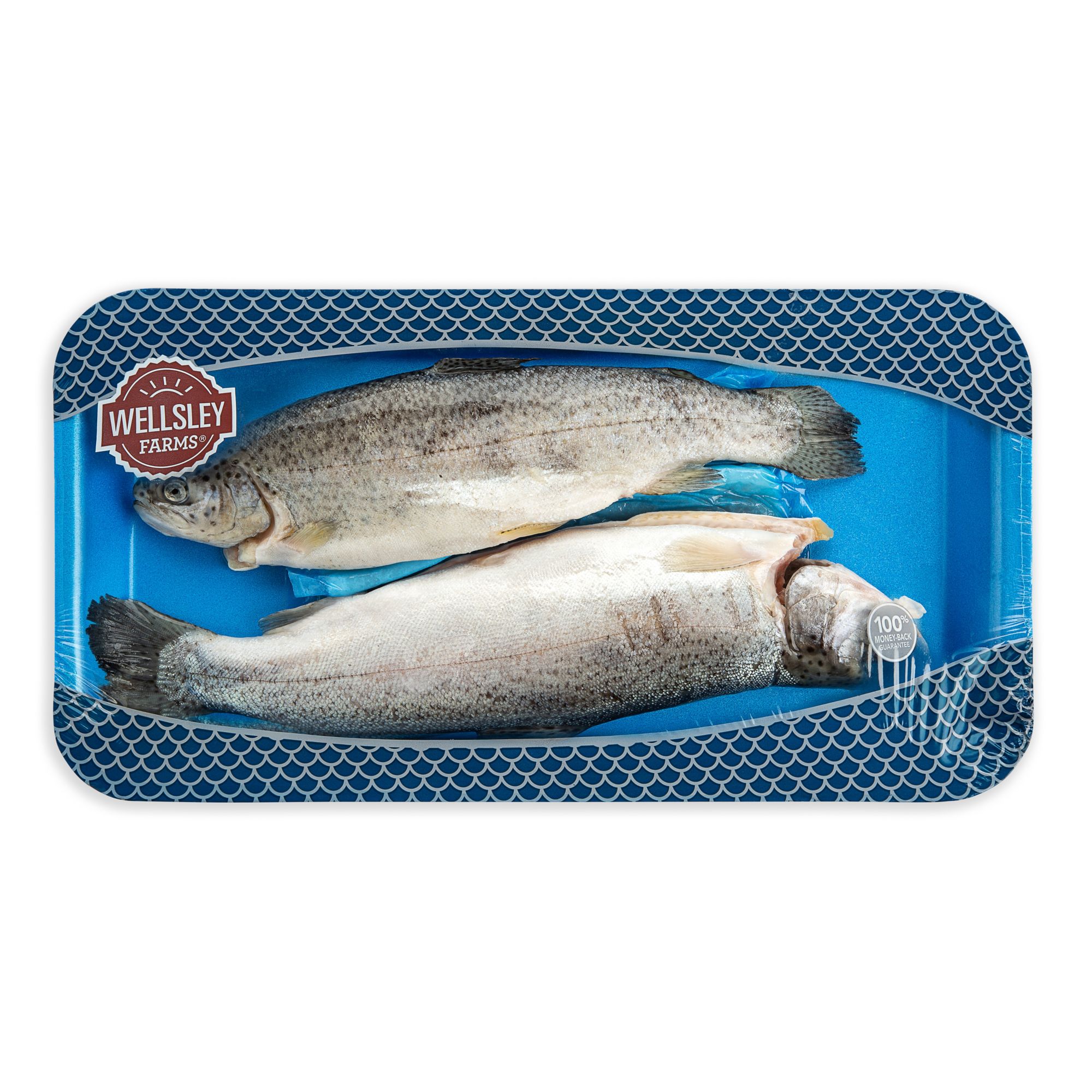 Wellsley Farms fresh whole dressed trout are raised in the pristine waters of Columbian lakes with open pens where the fish have room to move freely. The trout is 2-star BAP certified and have a mildly sweet flavor with tender flaky meat. Product Features: Wild caughtSealed packaging