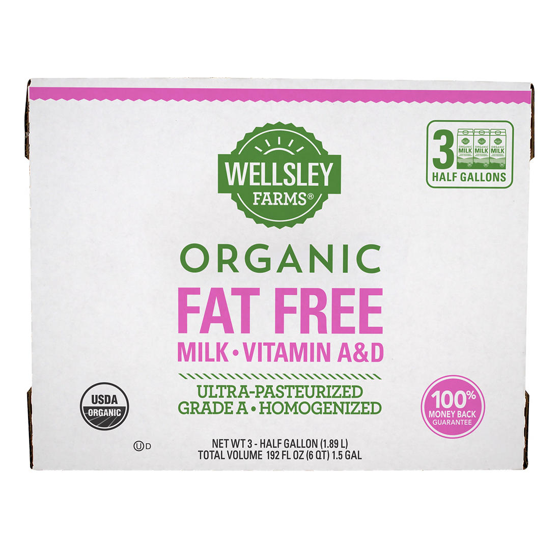Wellsley Farms Organic Fat Free Milk, 3 pk./64 fl. oz.