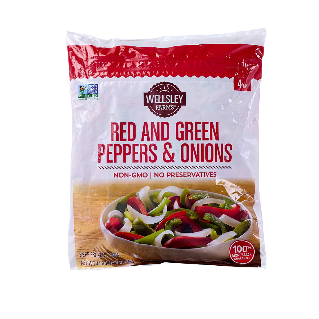 The Wellsley Farms peppers and onions are always high quality and flash-frozen to keep them fresh by locking in flavor, texture, important nutrients along with deciduousness. The vegetables are carefully cultivated and harvested at the peak of perfection. Red peppers, green peppers, and onions are must-haves for any cookout, sausage pepper, onions recipe, and especially fajita night. Comes frozen for quick and easy use that only takes minutes to prepare. They contain no preservatives, are GMO-free and have wholesome goodness due to their natural flavoring. Now you and your family can enjoy their favorite vegetables and recipes all year long. The smaller microwavable cooling bags make it easy to cook in minutes but are also great for traditional stovetop cooking as well. The frozen peppers and onions now come in a 4 lbs. size to deliver both value, taste, and quality you expect from Wellsley Farms.