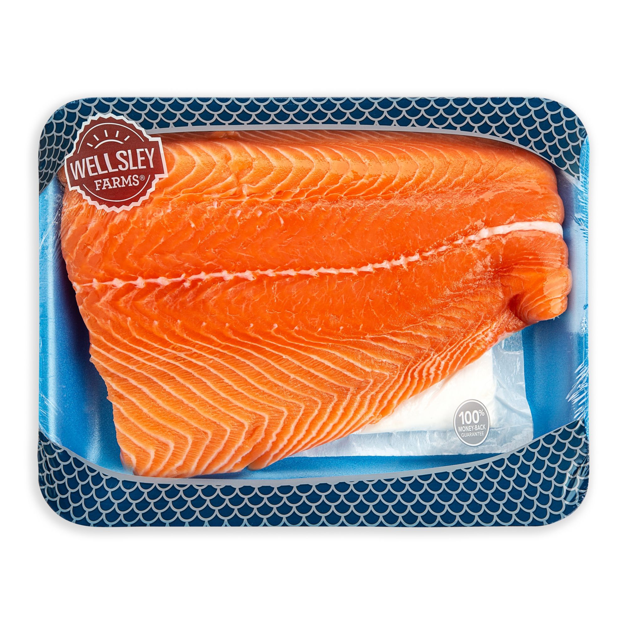 Wellsley Farms fresh Norwegian salmon are carefully ocean raised in the icy waters of Norway in the Arctic Circle to exacting specifications. Packed full of Omega-3 fatty acids, Norwegian salmon offers a mild and delicate flavor that lends itself to numerous different cooking methods. Product Features: Fresh Norwegian skin-on salmon Mild + Delicate flavor Ocean raised! Omega 3s Product of Norway Includes fresh Norwegian Salmon fillet Product Warnings and Restrictions: Contains seafood Ingredients: Salmon
