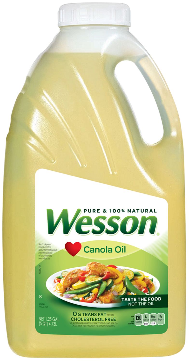 Wesson Canola Oil is versatile and is great for baking, stir fry, marinades and vinaigrettes. Product Features: Pure and 100% natural Wesson OilGreat for baking, stir fry, marinades and vinaigrettesTaste the food, not the oil0g trans fat0mg sodium per servingCholesterol freeKosher PareveShelf life: 270 daysIncludes Wesson Canola Oil, 5 Quarts (Model 2700069002)