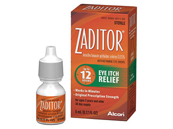 Alcon Zaditor Antihistamine Eye Drops work for up to 12 hours to relieve itchy eyes; These Zaditor Eye Drops work in just minutes to give fast relief for allergy symptoms; Original prescription strength Alcon Zaditor Antihistamine Eye Relief Drops will have you clear-eyed quickly.