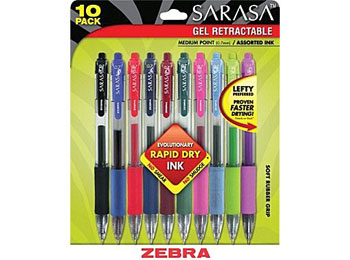 Assorted colors: black, blue, red, light green, violet, fuchsia, navy, cobalt, mahogany and forestrMedium point, 0.7 mmrEvolutionary Rapid Dry Ink Technology dries in less than a second, in an instant on most surfaces, eliminating messy smears and smudges.rLeft-handers will love this penrUltra smooth ink glide promotes a flowing, yet crisp writing experiencerLatex free, non-slip rubber gripr10 Assorted Pens per pack