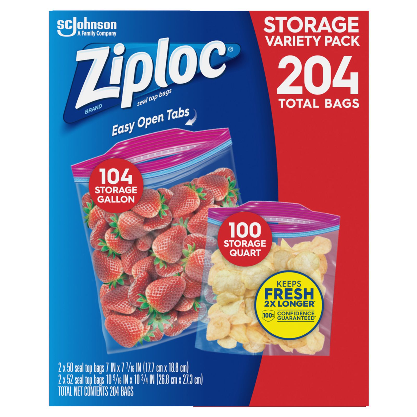 Get more out of your everyday with Ziploc brand products that are uniquely designed to help you save, store and organize. Product Features: Features Easy Open Tabs Includes 100 quart and 104 gallon bags (Model 70602)