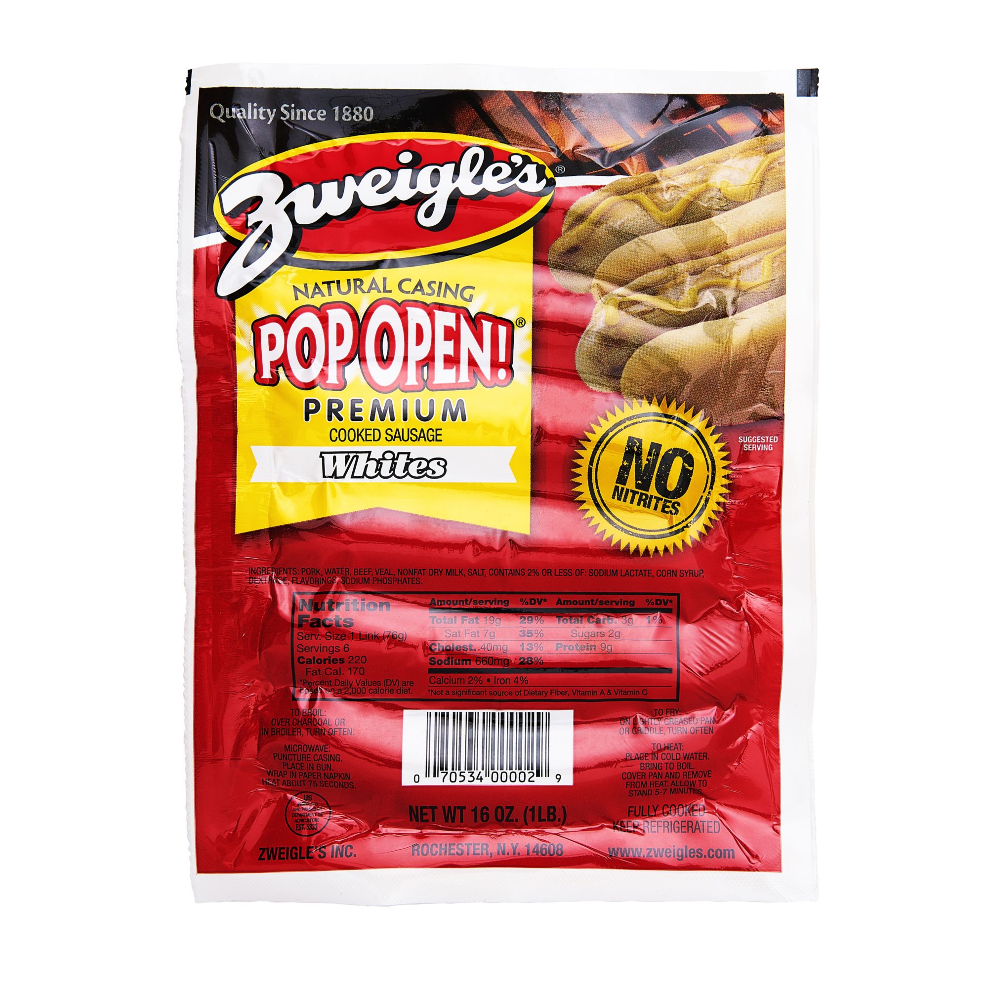 Zweigle’s Natural Casing White Hot Pop Open Sausage, 3 lbs.